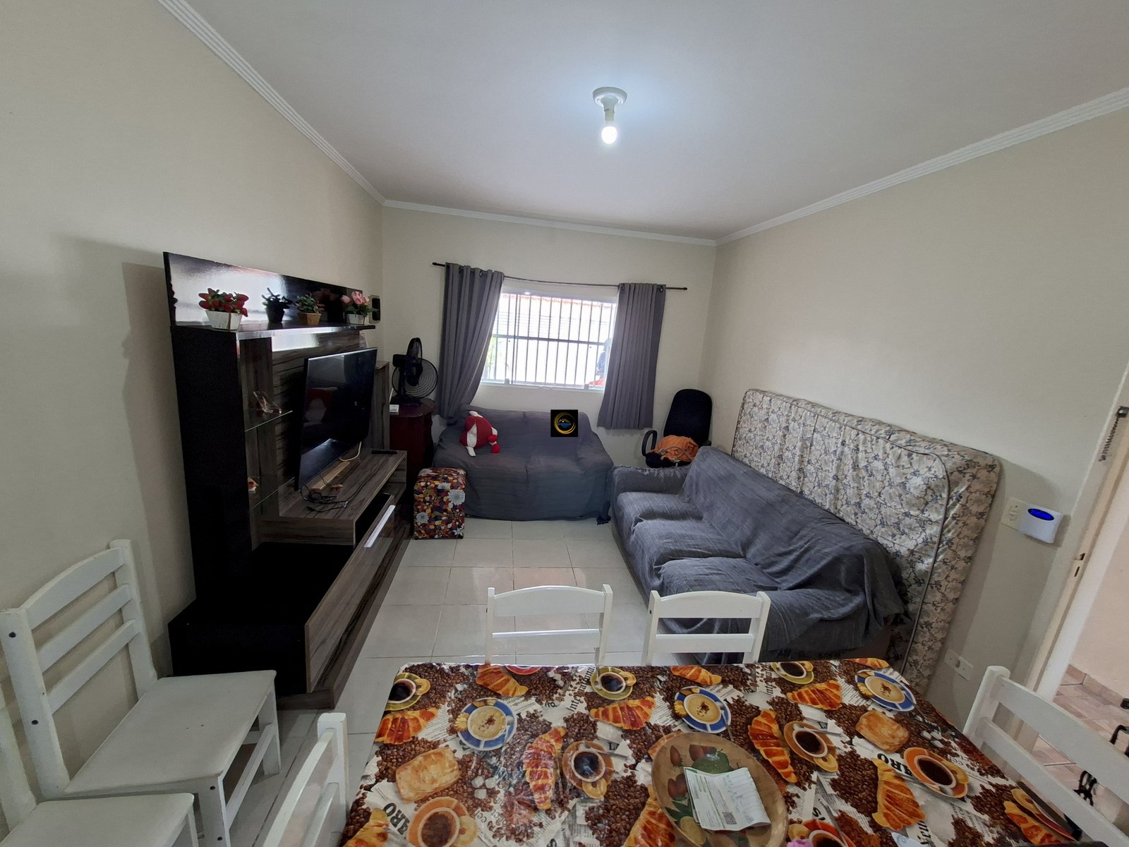 SALA, COZINHA AMERICANA, BANHEIRO SOCIAL E ÁREA DE SERVIÇO.