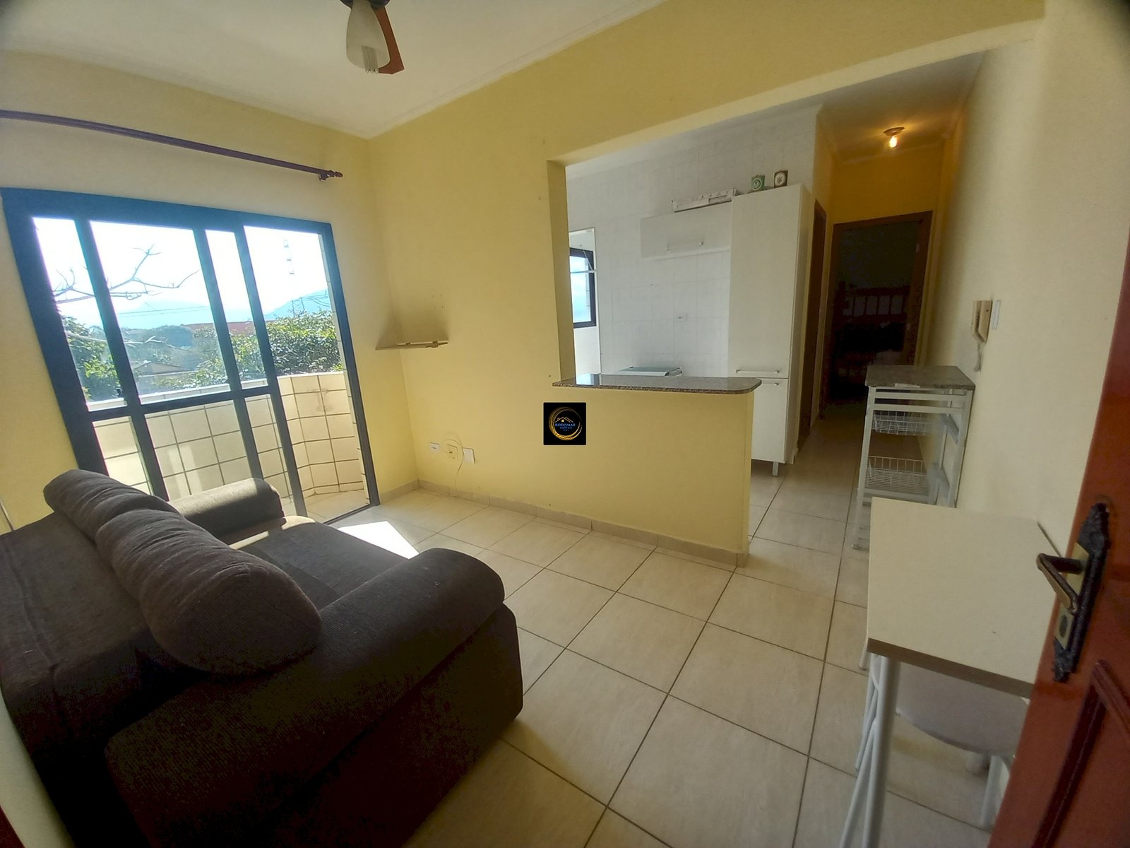 LINDO APARTAMENTO COM 1 DORMITÓRIO A 180 METROS DA PRAIA. SALA COM SACADA VISTA PARA A MONTANHA.