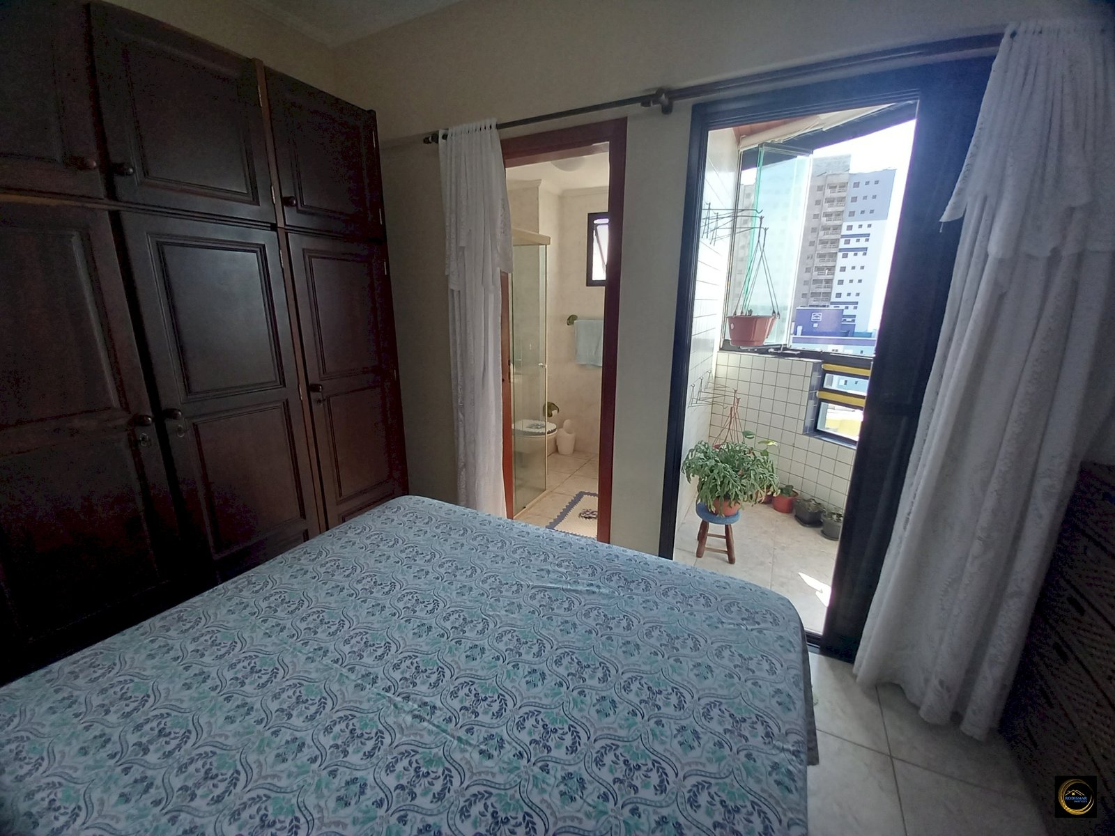 Suíte com sacada vista para o mar.
